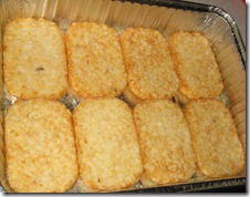 Spray bottom of 9 x 13 pan with cooking spray, line with the hashbrown patties.