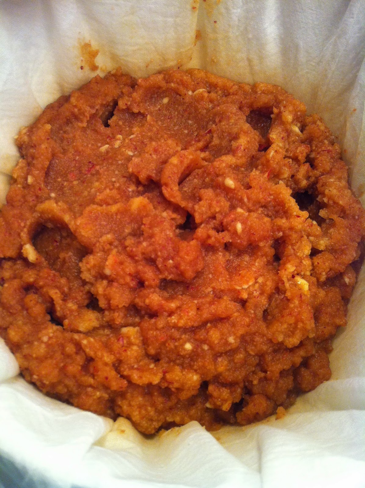 There's no recipe per se. But all you I-Need-A-Recipe folks, don't fret. You don't need one. You do, however, need a food processor and cheesecloth. Well, you don't even need cheesecloth. I used what's called bar cloth. Walmart sells these in packs of five in the kitchen towel area. Get those. You'll get tons of use from that five-pack.